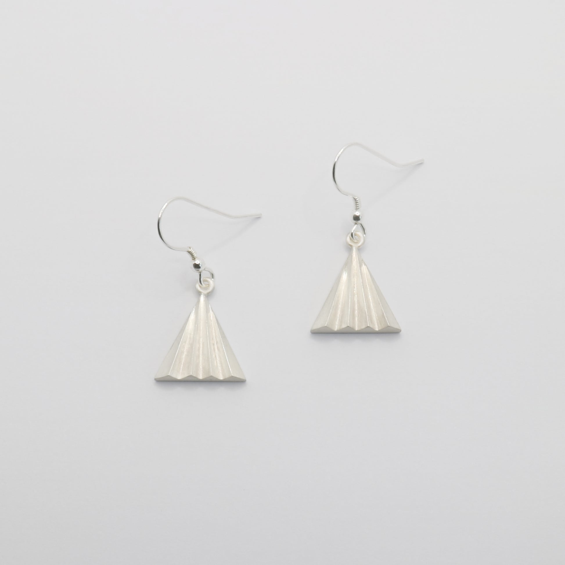 These Large Triangle Peak pair of drop earrings are made from Sterling Silver. They sit just below the ear lobe and are featured on a sterling silver drop hook finding.